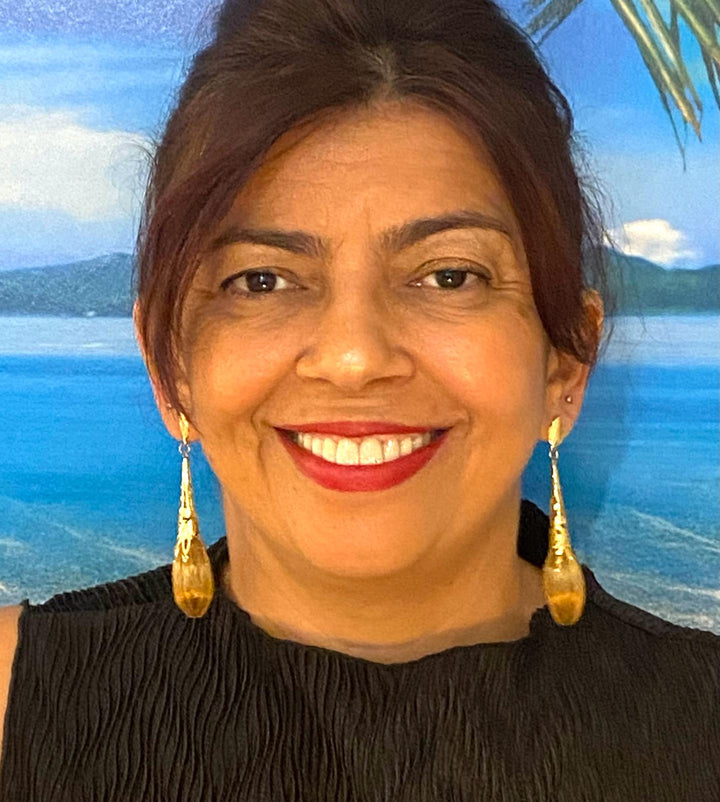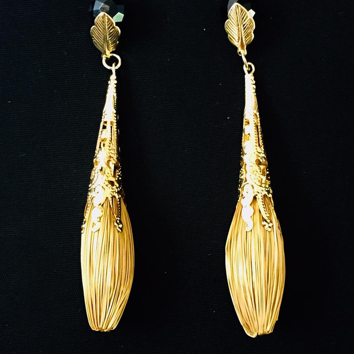 Paire de Boucles goutte longue en fibre d'or végétal.