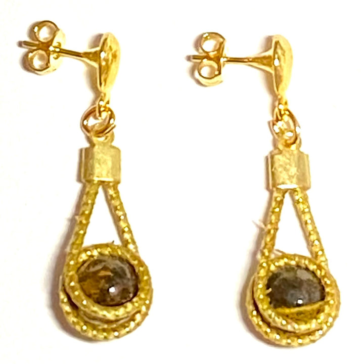 Paire de Boucles d'oreilles en or végétal ornée d'une perle en œil de tigre.
