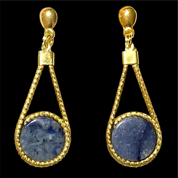 Paire de boucles d'oreilles en or végétal ornée de pierres en Lapis Lazuli