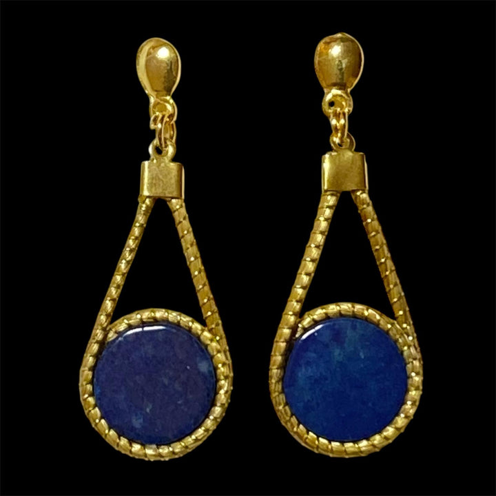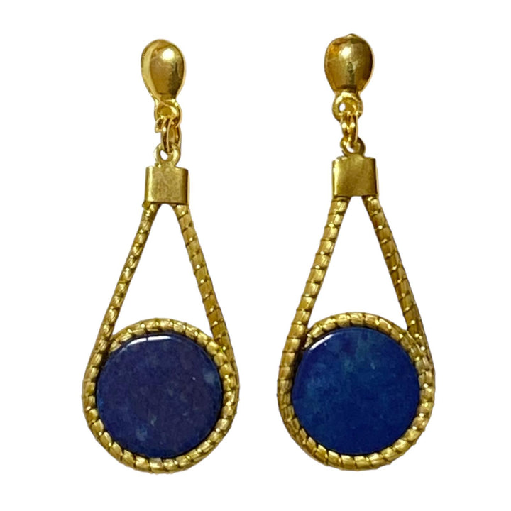 Paire de boucles d'oreilles en or végétal ornée de pierres en quartz bleu