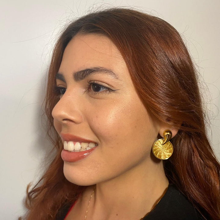 Paire de boucles d'oreilles en or végétal ornées d'un élégant design en métal plaqué or.