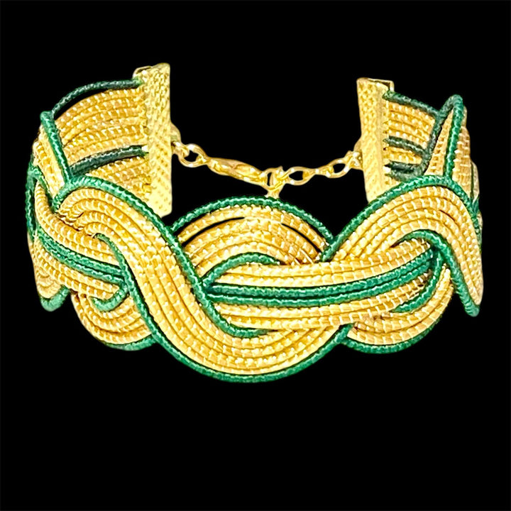 Bracelet en or végétal orné d'un détail en fibre de buriti teinté en vert, chaînette plaquée or.