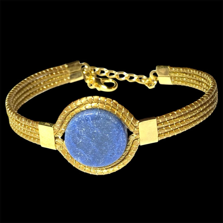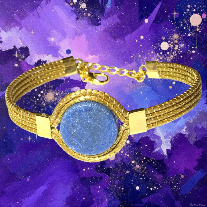 Bracelet réglable en or végétal, orné d'une pierre en Amazonite bleue, chaînette plaquée or.