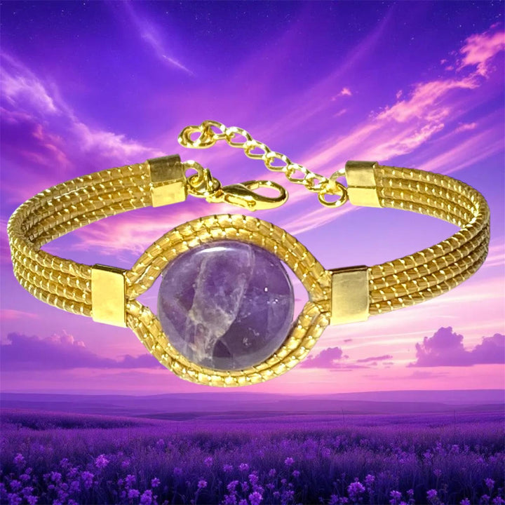 Bracelet réglable en or végétal, orné d'une pierre en Améthyste, chaînette plaquée or.