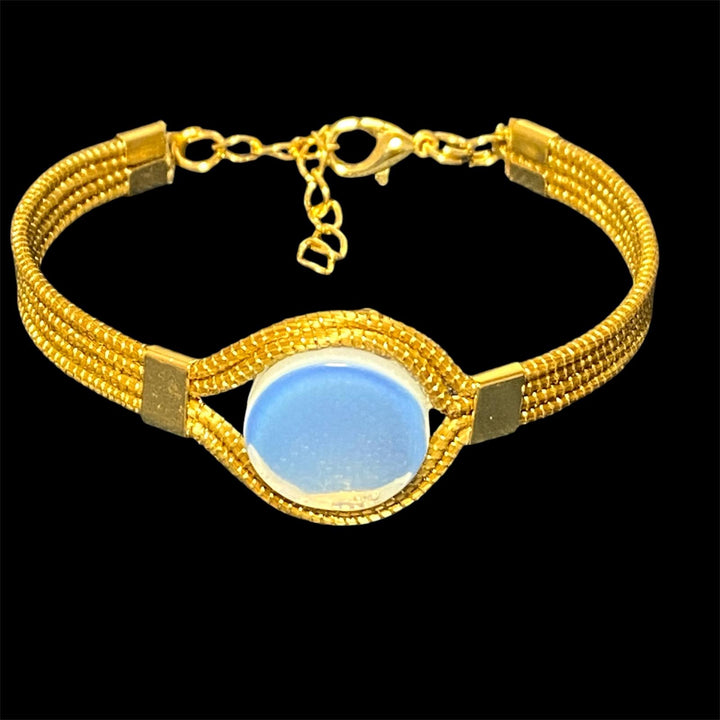Bracelet réglable en or végétal, orné d'une pierre en pierre de lune; chaînette plaquée or.