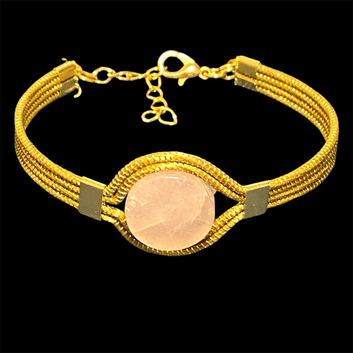 Bracelet réglable en or végétal, orné d'une pierre en quartz rose chaînette plaquée or.