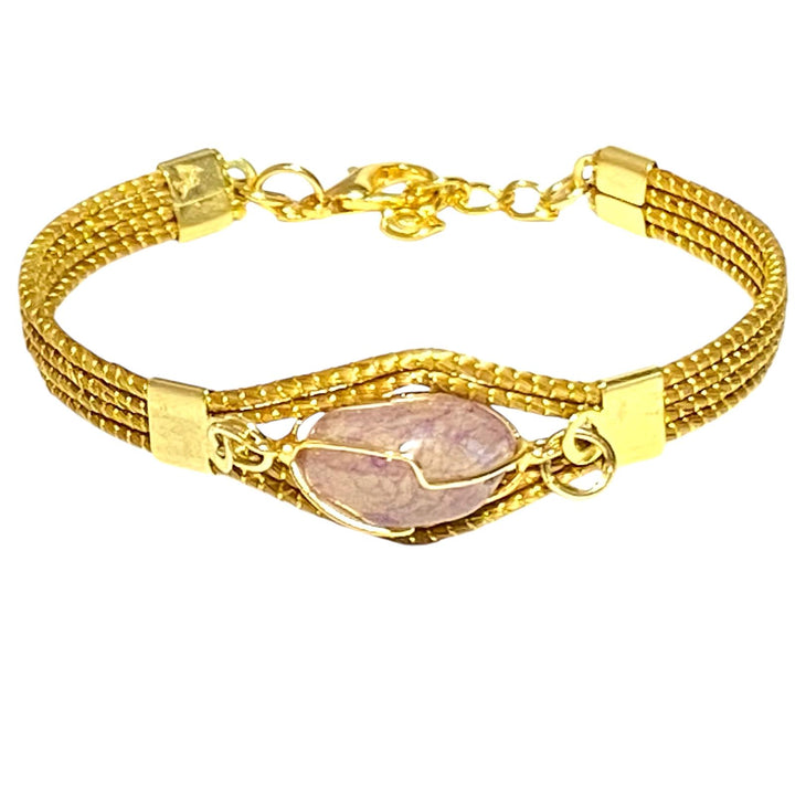 Bracelet en or végétal orné d'une pierre en améthyste, chaînette plaquée or.