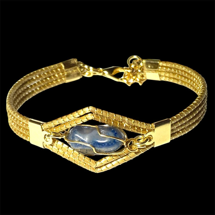 Bracelet réglable en or végétal, orné d'une pierre en Aventurine bleue, chaînette plaquée or.