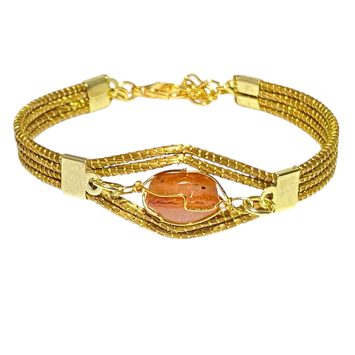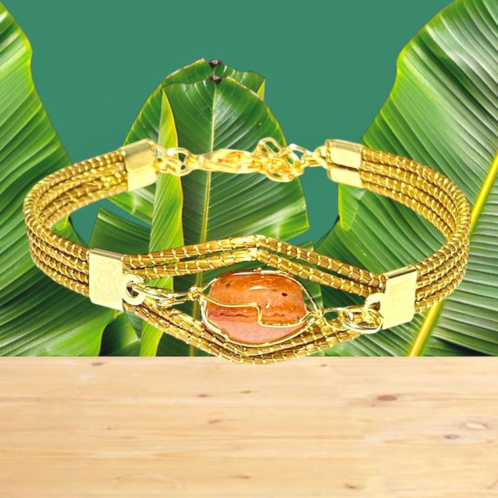 Bracelet en or végétal orné d'une pierre en citrine, chaînette plaquée or.