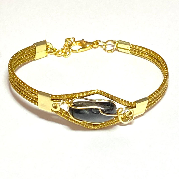 Bracelet en or végétal orné d'une pierre d'onyx, chaînette plaquée or.