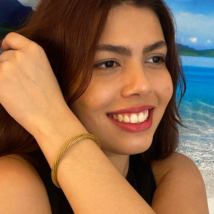 Bracelet fin tressé en or végétal, embout métallique plaqué or 3 microns.