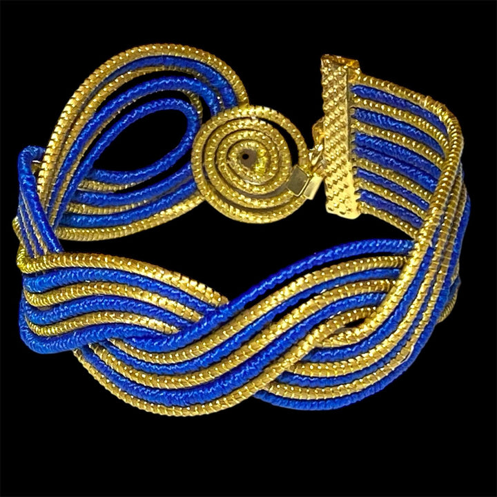 Bracelet large en or végétal et fibre de palmier buriti vert et marron