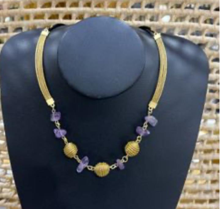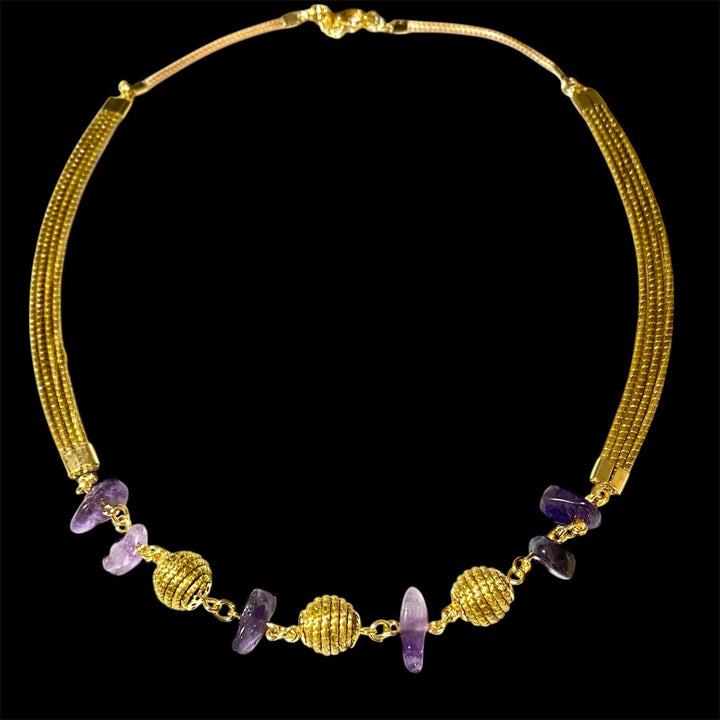 Collier ras du cou en or végétal et pierres d'Améthyste