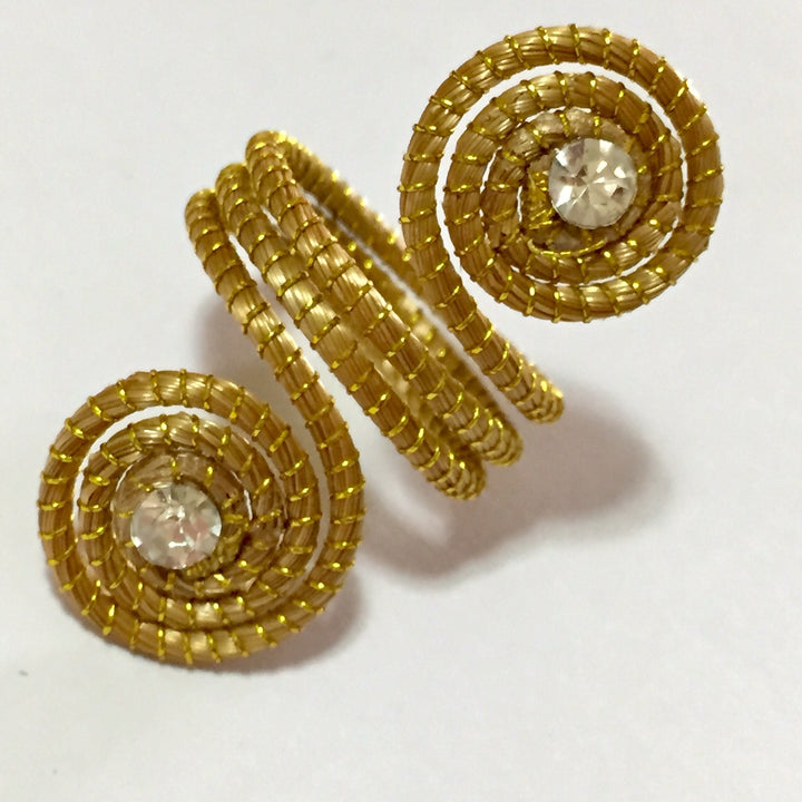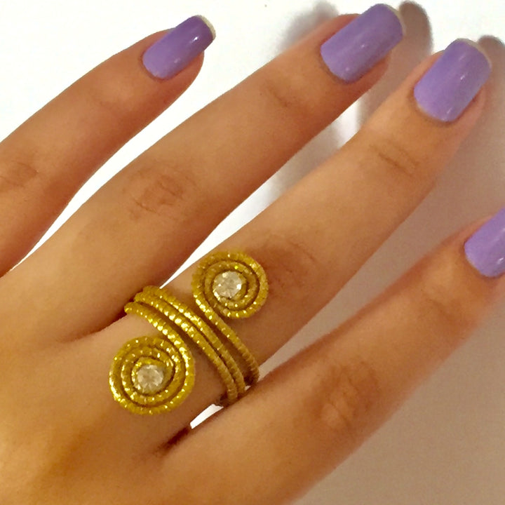 Bague artisanal en or végétal modèle double spirales , détail en strass*.